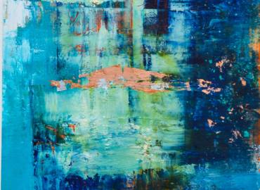 Acrylic on cotton, 122x122 cm. The artwork features roses floating on air pulsing with life.