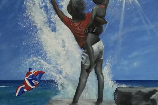 Oils, enamel, spray paint on paper, with frame, 112x76 cm