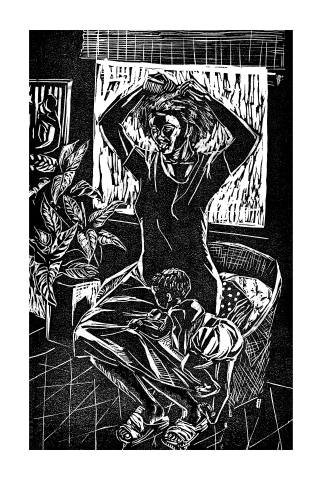 The Caribbean has a rich history where its people have evolved through time, shaped by the lives of their ancestors. The female figure bears strong imprints of all the highs and lows throughout that history. Being Afro-Caribbean myself, a lot of my thoughts and understanding are rooted in that ethnicity and culture. The tones highlighting charcoal is my medium of choice, which is evident in this body of work. The Caribbean also has vibrant colours reflected in my palette of colours. Jadon Matthews
