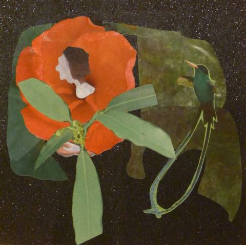 Acrylic on cotton, 122x122 cm. The artwork features roses floating on air pulsing with life.