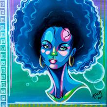 Atira started drawing when she was two years old. Her love for art has manifested through her insatiable desire to draw. The interest was fueled by her love for cartoons and video games. Her early years as a student were dominated by her desire to tell stories through her art. The art of Japanese anime, surrealist artists such as Luis Royo, Valejo Boris and Josephine Wall, have all been influential in her work. Atira’s mother who is an artist and educator has also been instrumental in her development. She studied art and majored in the Textiles Department at the Edna Manley College for Visual and Performing Arts. She graduated in 2004. Her work is illustrative in nature. She is conscious of the plight of our planet and uses her artistic voice to echo the plea to save our Earth. She tackles other subject matter which reflects the celestial, spirituality, brotherhood and kinship between humans and animals. She also focuses on portraits of women highlighting their sacred divinity, beauty, strength and majesty.