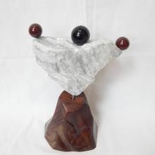 Various marbles on Black Walnut base, 30 cm tall x 25 cm wide, (12” tall x 10” wide)