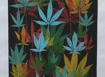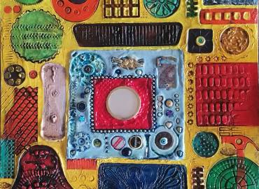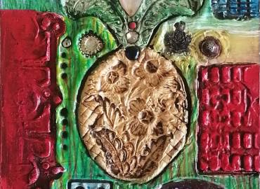 Mixed media collage on board, 53x57 cm