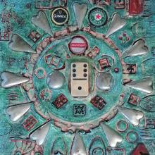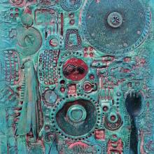 Mixed media collage on board, 53x57 cm