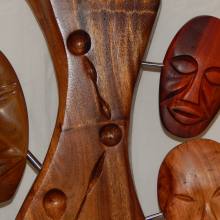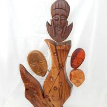 Various woods on a main body of Guango wood (Jamaica). 36” tall x 19” wide, 91cm x 48cm