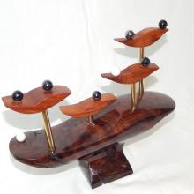 Padauk wood sculpture on a granite base, 39 cm x 33 cm x 10 cm, (base is 20 cm x 20 cm) 15.5” tall x 13” wide x 4” deep (Base: 8” x 8")