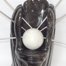 Sculpture in Black Walnut and Logwood and marble, 78 cm x 36 cm x 25 cm, (30.5” x 14” x 10”)